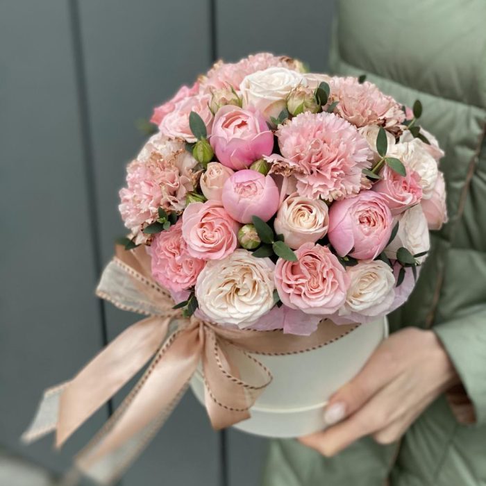 “В твоих глазах”: нежная шляпная коробка с французскими розами