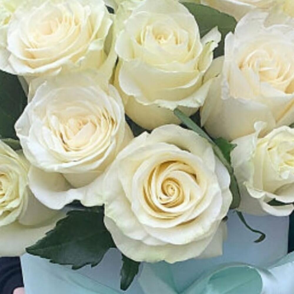 Роза – 25 шт.Коробка шляпная – 1 шт.Оазис флористический – 1 шт.Лента атласная – 2 шт.