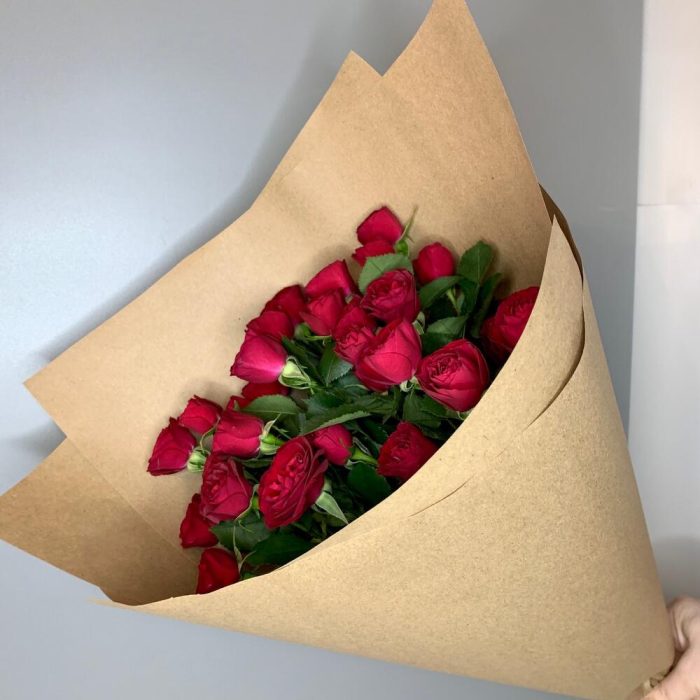 Роза кустовая – 7 шт.Лента атласная – 2 шт.Крафт – 2 шт.