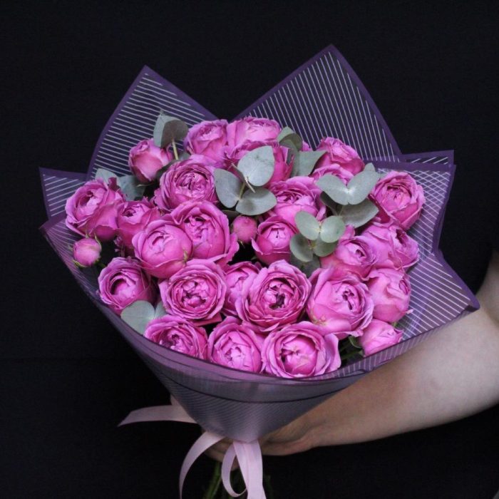 mono bouquet 146 из кустовых пионовидных роз сорта Silva Pink