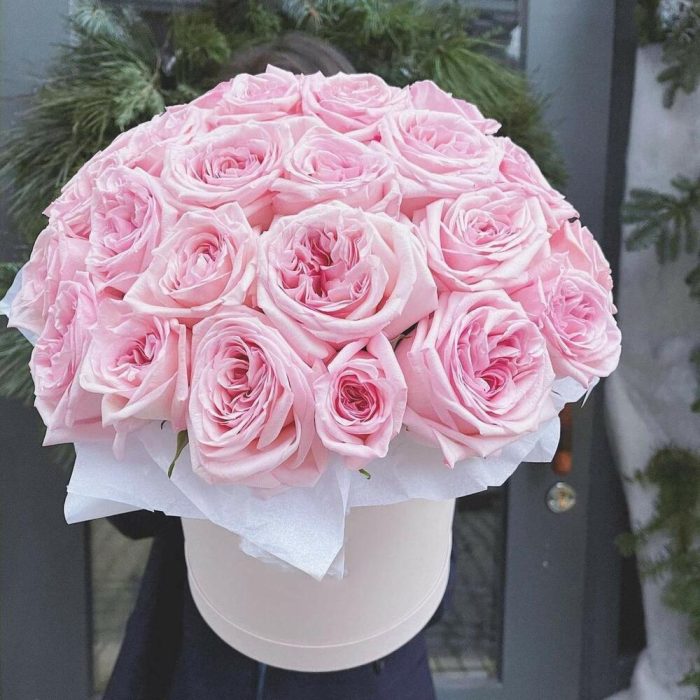 Пионовидные кустовые розы Джульетта в коробке «Чудесное лето»