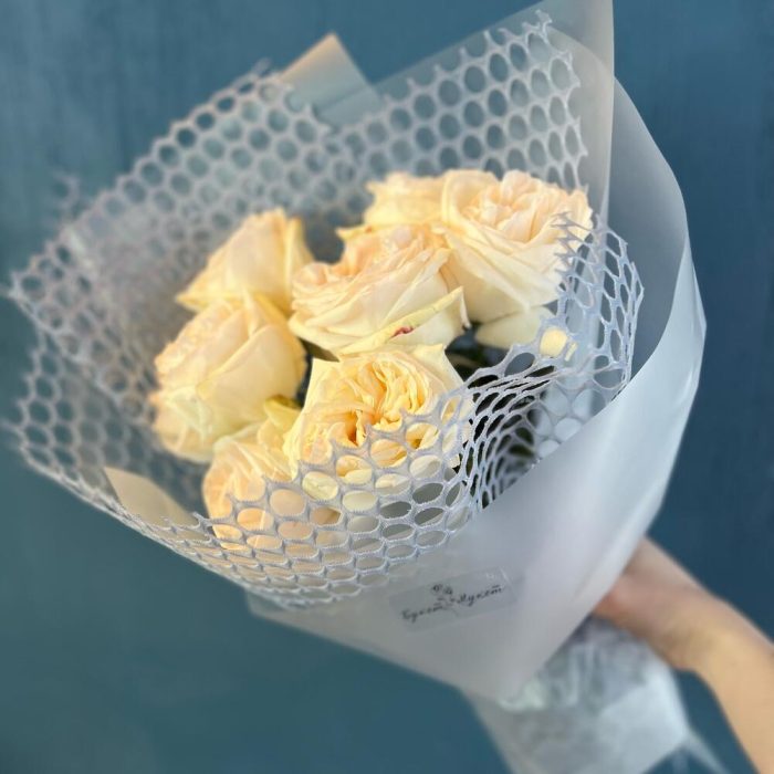 Стильный монобукет из ароматной розы White O,hara c нежной сетке