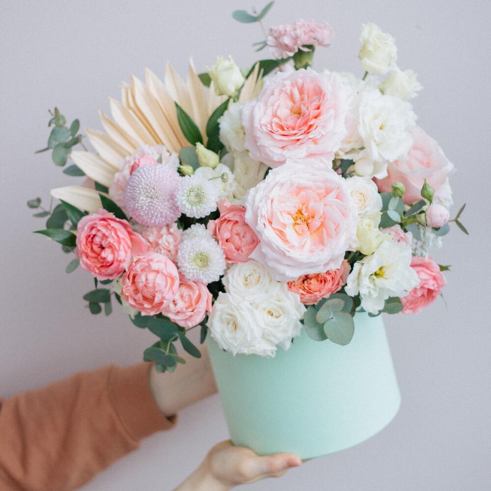 Роскошный букет с пионовидными розами и ранункулюсами «Аромат весны»