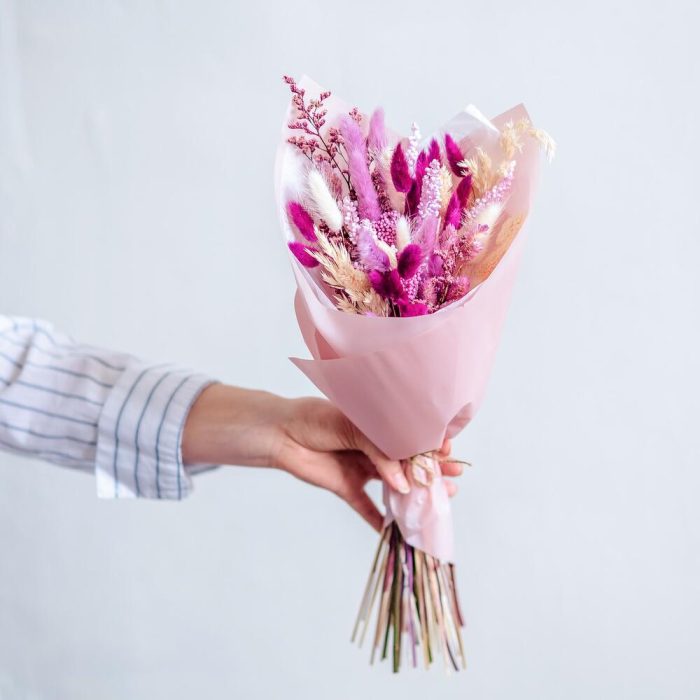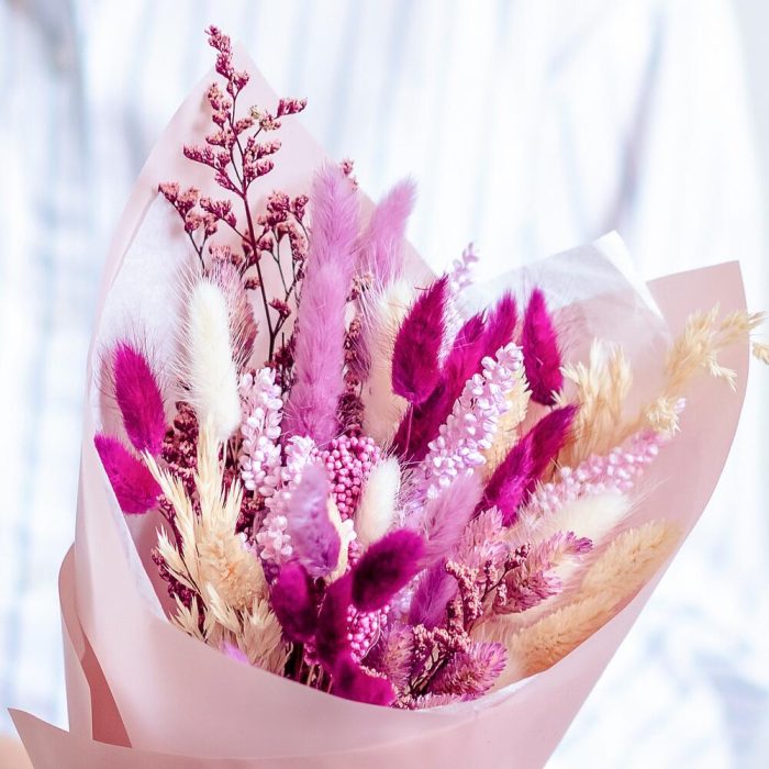 Букет из сухоцветов в лавандовых оттенках с хлопком